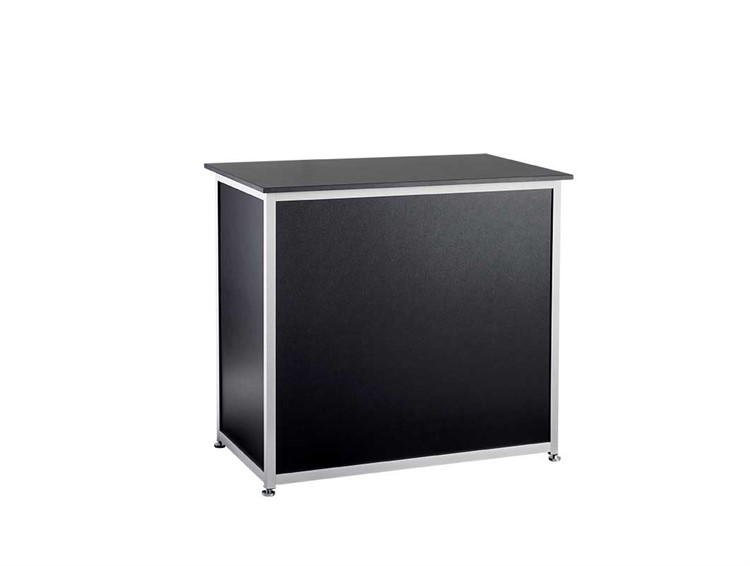 Disk, 1000x500x900mm, svart. Baksida med hyllplan och skjutdörrar, ej låsbara