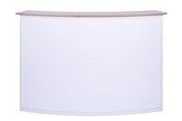 Rundad, bakgrundsbelyst ljusdisk i vitt, 165x71x110cm (LxBxH)