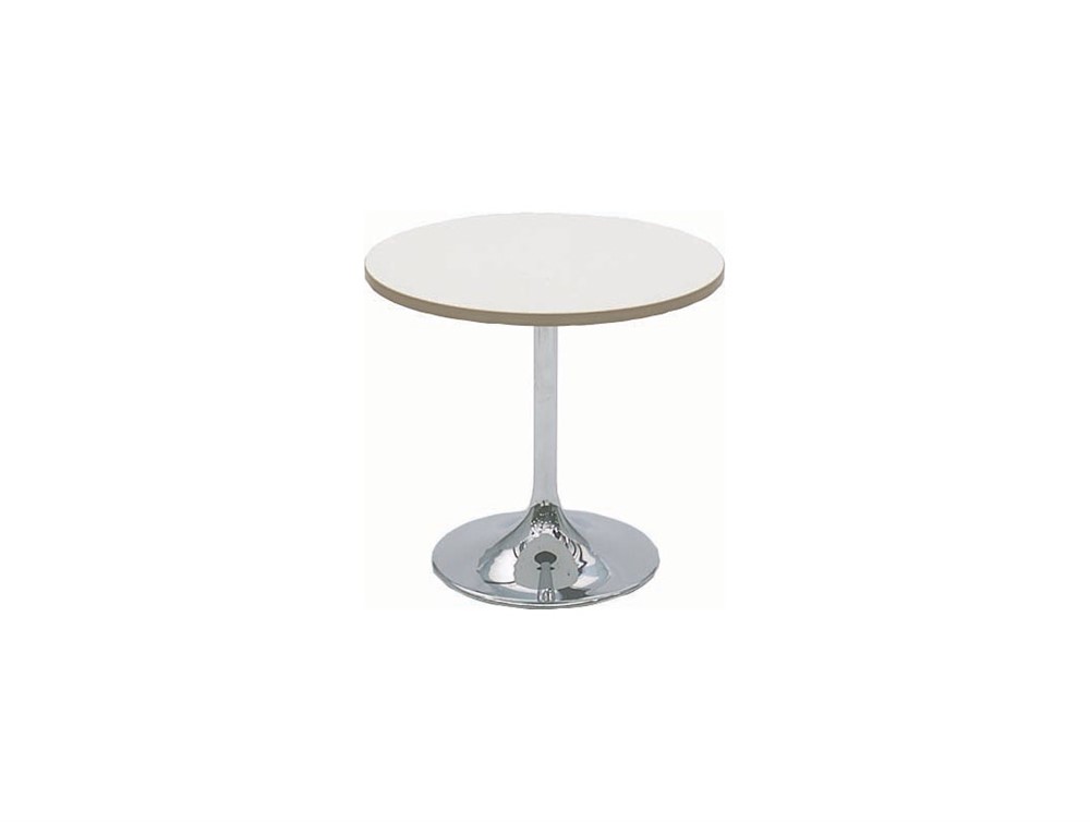 Soffbord, 60cm ø, 57cm högt, vitt med kromat underrede