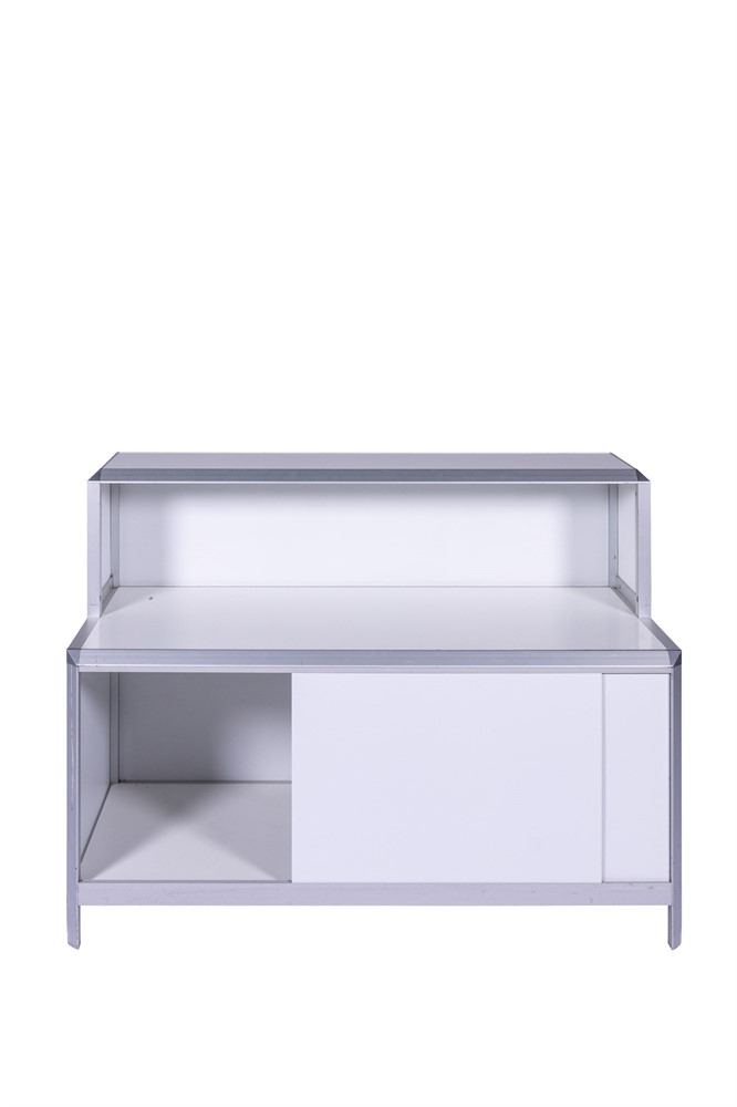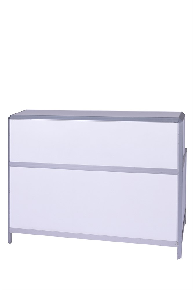 Profildisk i vitt med aluminiumlister, 150x64x105cm (LxBxH)