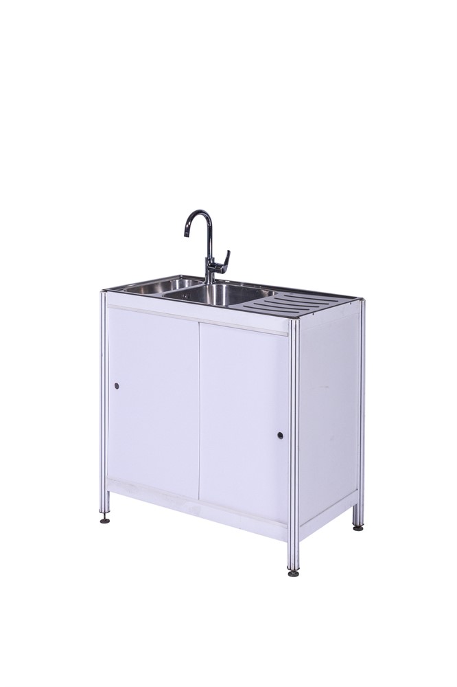 Rostfri diskbänk, 100x60x82cm (LxBxH). OBS! Inklusive vatten- och avloppsanslutning