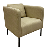 Fåtölj i beige tyg med svarta ben, 45cm (sitthöjd)