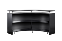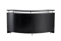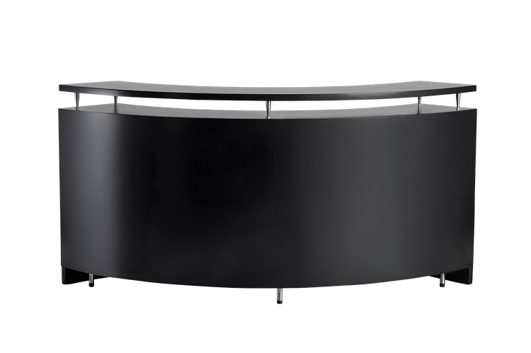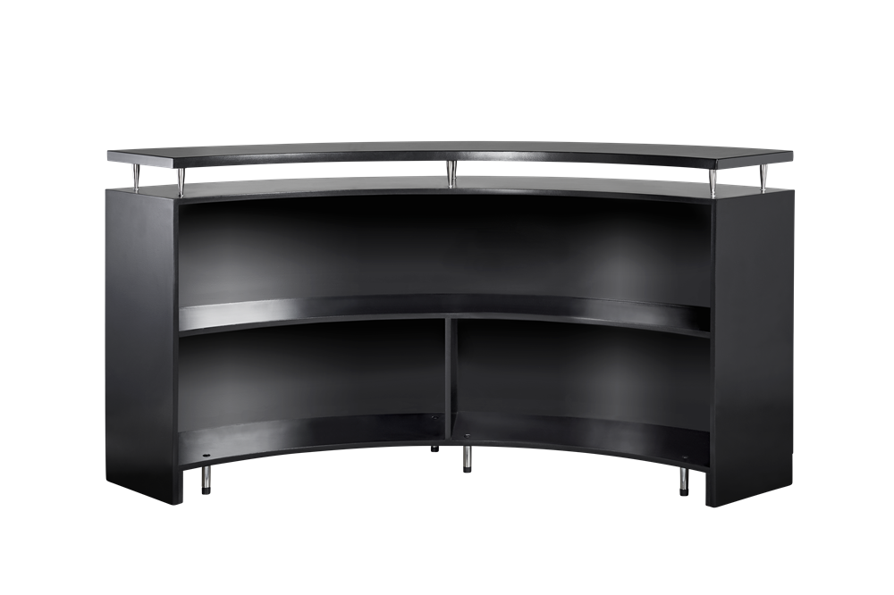 Disk, halvmåne, 2430x400x1100mm, svart. Öppen baksida med hyllplan.
